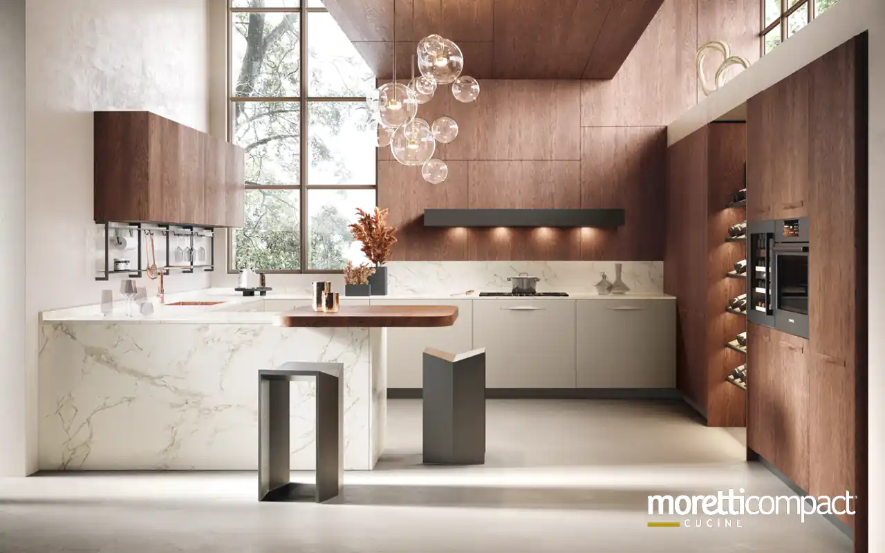 Con le cucine Moretti Compact la funzionalità assume una nuova forma dando vita a soluzioni che rendono più comoda la vita in cucina.