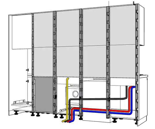 | Sistema per passaggio acqua, gas e scarichi all'interno dei montanti |